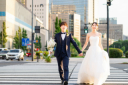 和田倉門だかこそ撮れる写真がたくさん!ドレスのトレーンを活かしたここでしか撮れない素敵な1枚を!反射して映るビル群も綺麗な放射線上に並んでいて美しい構図に。
