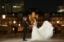 最後は東京駅舎前での撮影です!今度は新婦様からバックハグのお返しです♡新郎様嬉しそう^^