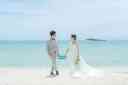 フォトウェディングの良さは、美しい景色も満喫できること じっと美しい海を見つめるおふたり