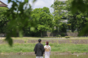 柳からチラッと見えるお2人。愛おしいそうにご新郎様が見つめておられてます♡