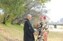 人通りの多い橋ですが一瞬の隙を狙って…!!ご表情だけでなく姿勢もお上手な新郎新婦様^^