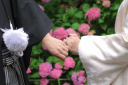 紫・ピンクの紫陽花が沢山咲いていて白無垢によく映えますෆ