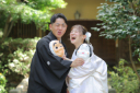 緑をバックに。紋付き袴姿がとってもお似合いのご新郎様✧
