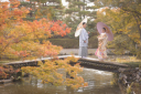 まだ真っ赤な紅葉ではなかったですが赤橙黄緑のグラデーションがとてもきれいなお庭でした(*^^*)おふたりも良いご表情…♡