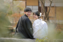 本日は祇園白川でフォトウェディング〰おふたりの愛犬《メメちゃん》が見守る中、まずは新郎新婦様を撮影していきます=3