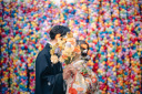 鮮やかな朱色の建物が特徴的な「毘沙門堂」。寺院の存在感もありながら、お衣裳も良くお似合いです。