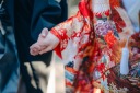 色打掛『牡丹』は新作の着物。鮮やかなネイビーとオレンジ色が可愛い一花写真館らしさ全開の色打掛です。