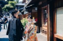 嵐山での撮影スタート。一花写真館では、極端なポージングはあまりせず、お二人の自然な表情を切り撮ります。