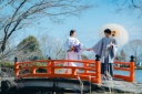 色打掛とは違い白無垢で正装に決めます。場所も白河院に変わったのでがらりと雰囲気が一転しました。2着着るのもいいですよね。