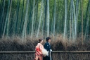 初めに東山で決めます。古民家の和風な雰囲気の前にお二人のお着物姿が相性とてもよくていつまででも見ていられます。