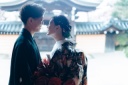 大覚寺の大門前でのショット。寄り添い合わないお二人の立ち位置は、どこかお二人の余裕と空間を生かした風情を感じられますね。