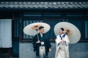 まずは美しい外観から撮影スタート。ポージングもばっちりなお二人。ネイビーの打掛が華やかに色を添えます。
