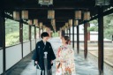 東福寺の素敵な緑に包まれるお二人。和装姿がより引き立つ自然あふれる一枚に。