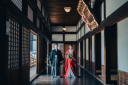 京都府庁のクラシカルな雰囲気にウェディングドレスとタキシードがよく映えます。