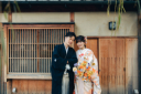 京都の街並みをまるで二人で貸し切ったような贅沢な一枚。おふたりしっかりポーズを決めて