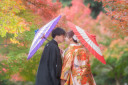 今回のプランは和装は2着着れるプランとなっております、白無垢からスタートし紅葉との撮影シーン本日はご家族もお越しいただいておりました