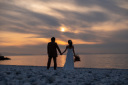 夜景の中で視線を交わす姿が印象的で、都会的で洗練されたムードを感じられる写真です。