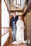 色打掛と紋付袴の後ろ姿が分かる縁側ショットです!!