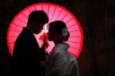 ジャケットを掴む新郎様、蝶ネクタイもお似合いです!