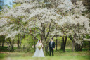 紅葉の時期でも緑の葉があり、素敵な背景でゆっくりとおふたりには歩いて頂きました。