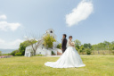 緑の中でのウェディングドレス姿はより一層際立ちます。