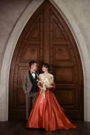 大阪城ホールをバックにカラードレスで!!赤のドレスがとってもお似合いでした♡