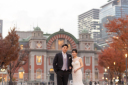古い建造物がより和装とベストマッチしてとても映えます。紅葉と青空がよりお二人を引き立てております。