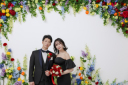 ここのブースは、ブルーのドレスとの相性がばっちりです!!タキシードとカラードレスの色の相性もばっちりですね♪