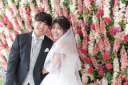 真っ白なカラーウォールはよりおふたりが引き立つように、お揃いポーズで!