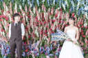 和装からガラリと雰囲気を変えての洋装撮影です!壁一面のルピナスを背景に、爽やかなおふたりがより魅力的に!