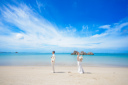 女の子の夢”お姫様抱っこ”でパシャリ。青い海をバックに、まるで絵画のようです。