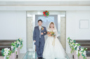 お二人並んでのショット。琉球キングスというバスケのファンのおふたりの思い出が詰っていて、とても感動的です。小物使いでおふたりらしさがグッと深まっています