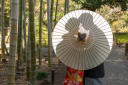 番傘とストロボを使用してシルエット写真を撮影しました。