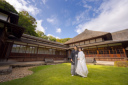 当店では、スタジオでの和装撮影をご希望のお二人に、近隣にある「庭園」での撮影を無料でご提案しております。