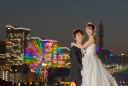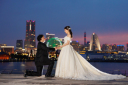 ドレスとタキシードはそのまま、万国橋へ移動しました!みなとみらいを背景にしたナイト撮影です♬
