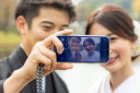 顔と顔を寄せ合うお二人…ブーケで少し隠しています♡