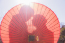扇子でお顔を少し隠し見つめ合うお二人のお写真です♪