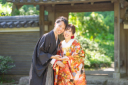 お二人そのままのお姿で近くの庭園にてロケーション撮影です。