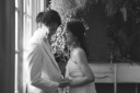 池を見つめる新郎様、新婦様。池にお魚が泳いでいたのでしょうか☆