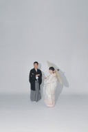その時スタジオにあった、ベージュの背景紙で撮影も。白無垢によく合います!