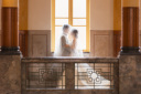 新婦様がお召しになっているお衣装は、レース生地の特別な打掛。当社オリジナルのお衣装です!