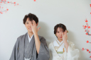 縁側で腰をかけるお二人。新婦様は新郎様に何を伝えているのでしょう!