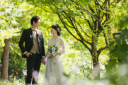 相合傘をしていただき、和やかにお庭をお散歩するシーンです!