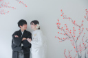 梅の花を背景に、おふたりに寄り添っていただきました!