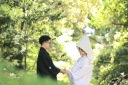 お花に囲まれてのおふたりショットです。公園内は綺麗に整備されてますよ。