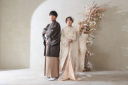 和装の伝統的な立ち姿。おふたりがお召しいただいた着物が綺麗に見えるように。