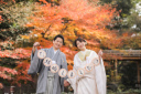 和装で定番の正座ショットも。ドライフラワーの背景は和装も相性バッチリ!