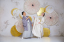 ハウススタジオにはドライフラワーのアーチが背景にありますが、あえて背景はシンプルに。アーチ無しの壁だけで。