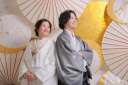 和装も雰囲気たっぷりのお二人、潔いシンプル背景が本当にサマになってます