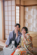 お二人で同じポーズをしてもらいました。娘さんもノリノリでした。